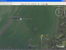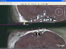 This Google Earth image shows both Deadmans Island and Paul's Mott |