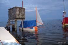 I just had to laugh it all off; I know my brother Paul was. But, sleeping on the beach was much better than my on-the-water setup. I slept like a baby using only a bed sheet, towel-pillow, and Goldbond powder. Also, I had to rely on my fathers camping stove for dinners. I decided that next year I will pre-plan and cook for every meal, have a real tent, have a real rain fly, have real sailing gloves (not gardening gloves), healthy trail mix, etc, etc – a list I made during my long sails. As for the performance of Patox, this is where the good things come in, I could not have asked for a better showing.