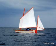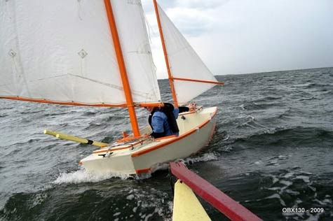 Even reefed Patox is a screamer. With no reefs my top speed was 6.4 knots, with one reef my top speed was 5 knots, and with two reefs my top speed was 4.5 knots. If the OBX130 in 2009 was a race, I definitely did not lose.