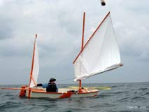 With a 72 square foot sail and good wind on that 11’, 370 lb (loaded) boat going 5.5 knots is no challenge. The fun part is goosing the wind just right to ride a wave for 30 seconds or more. Patox is so fast that sailing too fast was a problem. On several tacks I would run into the waves in front of me and submarine.