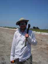 Carefully making my way around on the reef (oyster shells are