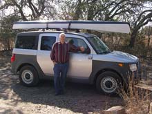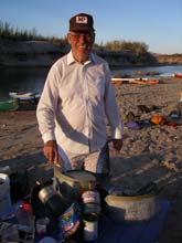 | It is a day's drive from our place to Big Bend so Skip arrived the afternoon before with his spanking new foam cored, kevlar and fiberglass canoe. The next morning we drove to the Rio Grande. |
