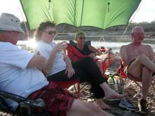 ... we swallowed our pride and joined them - after all they had wine. L-R John, Donna, Linda, Dana... |