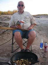 Finally it was dinner time and as I got set to document my culinary efforts. As I got ready to take the picture, I noticed Skip with his back packing meal. Now Skip and I have paddled together quite a bit but I don't have a clue what this expression means. Maybe he was just mugging for the camera, but I like to think he was envious of my home cooked meal. |