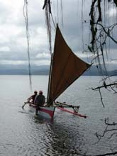 I had built Dierking's Ulua at 21' because it's versatile and beautiful. Mine is in his book as a tri, but currently rigged as a single outrigger with a different set of beams. I also have his plans for Tamanu. Cool boats! I also like cats, and I would love to have a cruiser at 21-22'. I thought about making a second Ulua on the same moulds, but the 18" freeboard is a bit short. I could raise it to 24" and deck the boat, but then it's not a Ulua or a Hawaiian outrigger canoe. His Tamanu design fits the bill with a higher freeboard, decked hull, and self-bailing footwells. Qualities I want in my next sailboat include being easily reefable, having a hard deck, comfortable seating, huge tent on deck when shore looks unappealing, etc. The additional length over the Hobie 18 is for fine hulls that can still take the weight I'm looking to carry (4 adults plus lunch or 2 plus cruising gear). Think about 1000# at the upper end without dragging the transoms. With a canoe stern like Tamanu's I suppose the draggy stern issue goes away, but it does limit where the deck goes. I'd like to add my two horse Merc to the mix as paddling a bigger double canoe is best done for short distances or with larger crews.