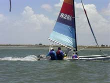 That said the H 18 worked well for the Texas 200. We were first to get to the sites most days or nearly so on elapsed sailing time. The sailing was fun if a bit wetter than I would want to be for any sustained period of time. The boat carried the weight, but not well. The reefing was accomplished by roller furling jib and a serious twist in the head of the sail. We carried all camping equipment needed for the five day event + food and water.