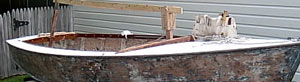 Additionally, this plank had been let into the beams—in other words the beams were cut away to allow the ¾” plank to lie fully beneath the plywood. This had the net result of reducing the load bearing section of the beams from 1 and 3/8” to 5/8”—more than half the beam. In actuality the beams had even been over cut and ¼” shims placed between the plank and beam. Needless to say all beams had suffered breaks while weakness in the bows due to omission of the breast hook (the plank was toed in to a block screwed to the stem with nothing tying to the hull) was evident from numerous repairs to the stem.