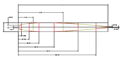 Keep in mind that if the width of the board varies, then the thickness must vary proportionally if you want the same section throughout the foil. For example, if the board varies width from 12 inches to 9 inches, the board should be 1 ½ inches at the 12 inch wide end and 9/12 x 1 ½ inches, or 1 1/8 inches thick at the 9 inch wide end to keep a constant thickness to chord proportion of 12.5%. Any such required tapering should be done prior to making the first cuts (while the section is still rectangular).