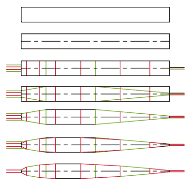 This approach, like in spar making, is to layout the stock so that material can be removed in a controlled, measureable, repeatable way. Because each cut is planer, progress is easily assessed and the completion of a particular cut is easily verified.