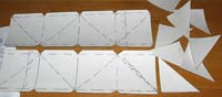 2 - With all the pieces cut out, set the 8 small triangles aside and temporarily fold all the tabs over flat forward so they are out of the way. For the small triangles, fold the tabs back. |