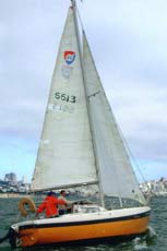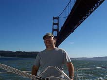 My friend and I were doublehanding my 26 foot sloop across the Bay, admiring the spectacular views of the Golden Gate Bridge as we sailed parallel to the bridge, about two miles distant, to seaward of us. We were filled with youthful confidence, now veterans of dozens of Bay adventures. Double reefed in a strong breeze, with foam showing at the tops of the dark green waves and the jib already wet with spray nearly to the spreaders, we decided the moment might be right to make our first run out to sea under that bridge, a Bay rite of passage. The sun was shining in a blue sky. There was no shipping traffic in sight. We'd caught the last of the ebb (which would make for flatter water as the tide turned). The strong wind promised a quick round trip. Yes, the time was right. "Let's do it", was the word. We strapped the sails in tight, focused on our goal a few miles to windward in the strengthening wind, and set to work driving the 6,000 pound sloop hard to weather.