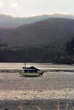 I motored down into Port Levy at dusk with no wind and anchored on the mud flats just a few yards short of the high tide mark in several inches of water. I was so tired, I skipped the evening meal, made up my bed and tried to go to sleep. First the water lapping at the bow kept me awake, then the tide receded leaving me on the mud. Ahh, I thought, now I can get to sleep. But then the wind got up and the halyards started to bang against the mast. The wind died down about 2am only for the nocturnal bird life to begin honking and screeching. Perhaps I snatched an hour's sleep somewhere in there!