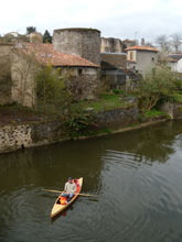 So after a miserable winter, the April Sunday appointed to be splash day for the Sprucegoose revealed itself with a miserable cool, gray drizzle. So much for MeteoFrance. Weighing the possibility of a cold drenching far from shelter against the “if not now, who knows when” reality of life lately chez Anderson, I decided to hope for the best and we packed up the gear and headed off to the River Thouet which runs past the medieval quarter of Parthenay.