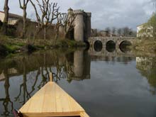 So that was how it went mostly. I stopped counting weirs and dams after maybe 15, but there were more in the 10 km or so I covered during the day. I had planned to pull out by the old stone Roman bridge at beautiful little town called Gourge’ but didn’t get half that far. I will probably head back to the Thouet this summer, as it is close and I would like to explore more, but I am going to have find another river around here where you can paddle more than a couple of hundred yards without having to portage.