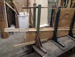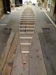 Day 7- Half day, cleaned up the shop and put into 2 foot panels which make sides of canoe. There are 13 panels on each side, a 26 foot canoe. The panels are held in place by faring sticks, stakes, and wood clamps.