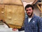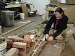 John cutting gores in the bark. Note the rocks on the frame on top of the bark. |