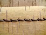 Day 25- Finished sewing panels. We than began pegging and sewing the gores and where the hull bark pieces fit together. I also began lashing/sewing the stem piece into the bark with a simple spiral stitch.