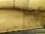 Began working on the fiberglass canoe. This one is a replica of the birch bark canoe we are making but is 28 feet. It is basically the stunt double for the birch bark canoe. We will be making two of them which will be shipped out to Winnipeg on May 20. Production of the fiberglass canoes are week late so it’s going to be tight for the May 20 deadline. John hired someone to make the fiberglass canoe shell from a mold he made and our job is to trick it out so it looks like a birch bark canoe, complete with lashing (synthetic root), black pitch lines (synthetic pitch), and a birch bark paint job.