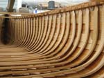 Here you can see the bark between the inwale and the outwale. As well as how the thwarts are positioned. |