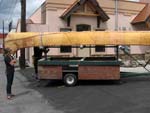On the trailer and ready to be shipped to Peace River, Alberta near lake Athabasca. The canoe will be in a 1000+ mile voyage from the town of Peace River to the Pacific Ocean. The trip will be filmed for French-Canadian television series highlighting the expedition of Alexander Mackenzie to the Pacific Ocean. |