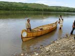 Getting ready for the 26' Chipawayan cargo canoe's maiden voyage on the Peace River, Alberta. |