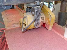 Pulled rubber bands off after work. Took about a half hour, beats pulling staples. Did a little rough shaping taking off glue and knocking off edges. 36grit in the DA sander was a little too rough so I used some finer (!) 40 grit.