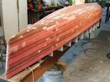 Fortunately, the form for the 14’ version of EasyB is sitting under the house more or less ready to go. It is the only form I’ve ever used to build more than one boat on the same form. Steve Mattingly’s mahogany stripper and Robert Bowle’s stripper with the one of a kind mesquite decks both came off of that form. Robert’s boat has been in the water twice that I know of and usually hangs in his living room. Steve’s boat went straight to display mode and has probably never been wet. Seems fitting to have a down and dirty boat come off the same form.