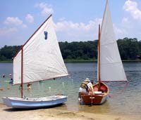 Olivier and I head out for the first sail in his Goat Island Skiff, while Helen’s and my Piccup Pram patiently awaits its turn. Even though the GIS is further away from the camera, you can see how much bigger it’s 105 square foot sail is than the 55 square footer on the Piccup.
