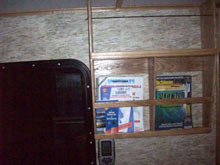 This past winter we finished the interior. We designed and constructed the cabinets that were made from black ash and black walnut from my uncles. Wallpaper, trim and the final touches were added. Now all we need is a name.