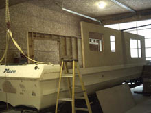 Roof, fly bridge and front wall installed |