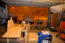design that I really liked the looks of. For various reasons I decided not to build it and searched some more. I found Michael Storer's "Goat Island Skiff" (GIS) design and really liked the looks of it. Michael answered many of my questions via e-mail especially concerning the advantages of the balance lug rig that the GIS uses. I ordered a set of GIS Plans and spent a lot of time reading through Michael's instructions. Before I could order material I decided I wanted a boat with lots of flotation as it would be sailed with a couple of young boys aboard and I wanted the flotation. This also led to my discovery of Duckworks as the GIS plans were bought from the Duckworksbbs.com website.