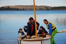 The launch day was just one of the best days of my life! We had to wait a couple of weeks from the time the boat was ready ...waiting for a day we could take the kids out of school when the weather was suitable ...and finally on October 17th, 2008 everything lined up. A fine October day of about 50 degrees F with low winds and partly cloudy skies. An old skydiving friend, Terry, joined us and we after I explained my reasons, I dedicated the boat to my late father and named it Ugo Igo Too. We took it out using the outboard first (ironic considering my aversion for motorboats) with just my family aboard. As none of us had never sailed before we had decided that Terry and I would put on our wetsuits and other cold water gear to sail it before we took anybody else. We were easily able to sail the boat through tacks in the light air of 6-9 mph and never felt uneasy with the handling in the winds we had. So, we went back to shore and picked up our two sons, Hunter and Cameron, and went for a sail.