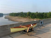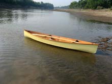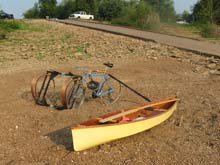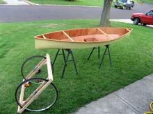 rendered "Swamp Yankee" canoe at a couple of Midwest Messabouts and while I did not try using it I still felt that it would be ideal. At just 11 feet by 28 inches, and under 30 lbs it could be easily carried and launched and other than windage would not present too great a drag to the bicycle. When Messing About in Boats published the plans for the Swamp Yankee in a Fall 2007 issue, I knew my plans where coming togther.