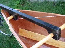 and also the forward thwart, said thwart installed expressly for use with the tow bar, as I don't feel the canoe needs it otherwise. A turnbuckle bolted to the bicycle-end of the tow bar provides an