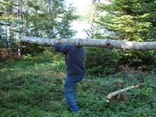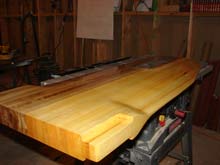 | The next trip to my home town, a maple was felled, <pic6> carted to the mill for sawing and then tied to the roof rack of the car. $25 for gas, and $10 for sawing. No less than 4 planks 2x5 x 12 ft long. Enough hardwood for all my needs. |