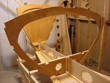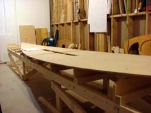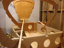 Now this is looking like something. Within a couple of days I had placed all the frames including the stem girder in place and glued them. They were checked before gluing for being level as was the stem for being perfectly vertical. |