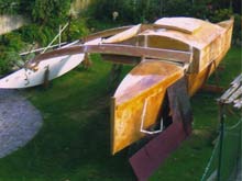 I sat down and made a drawing 1/10 scale. I used the Tiki 26 construction drawings and the information on the Madison Proa to design my own boat. Due to the length of the three 6mm plywood sheets, I decided on a total length for the boat of 7.5 m. I used the TIKI's beams only bent, it was great work. For the AMA, I used the main hull of the small Proa. (I had two boats at once)