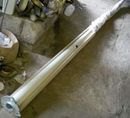 Flagpole mast purchased from local flag dealer. The steel base becomes a sleeve and extends up 25 inches into the mast. It is a good counter weight. |