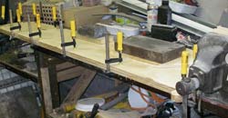 I salvaged some space on the front of this bench for a glue station. |