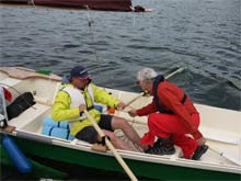 Tanner in a 24-foot long Shetland Island Yole. Near the end of the first