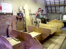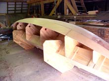 One of the key features of the new Seil-18 plan is the sturdy 12 x 16 inch hollow beam that keeps your boat straight while it's being built. In fact, the jig is also a very convenient support to cut out planks from the scarfed, 18 foot (!) boards in case you don't have such a long table on hand. It's also very useful to keep the station moulds in line while you shape the hull.