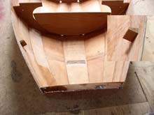 Though the Seil-18 is basically a jibless boat, François was prepared to draw an additional sail plan with a 35 sqft jib for extra handling possibilities. This required a second mast step further aft (the main shifts about 22 inch aft), bottom reinforcements, and additional eyelets for various pulleys and stays. If you plan to build a Seil with a jib, you could even extend the lower centreboard battens through station #9 to accomodate both mast steps.