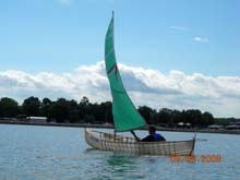 lower windspeed to sail upwind over 45 degrees. Since the empty hull weighs only 34 lbs, the canoe sails very well, and pretty fast.