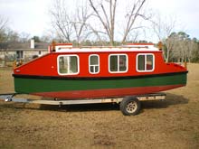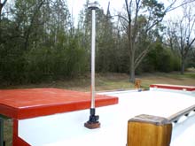 Attached are the photos I promised of you of the LED all-around light installed on the Escargot canal boat I am building. The light appears to be well made and was easy to install. Since the roof of my boat is rounded I had to make a fairing block to match the pitch of the roof in order to make it stand up straight. Another interesting feature of this light is that the staff appears to be the same diameter of ½" conduit, so a longer staff would be easy to fabricate if needed. I haven’t powered-up the light yet because the boat hasn’t been wired. I need to float it before wiring to see where to place the battery for best trim first. I will probably do this in two-weeks while my mother is here to sew the cushion covers for me.