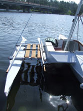 In conclusion, I must say I was impressed with all aspects of the little boat. It is rugged, roomy with plenty of freeboard, and able to withstand the inexperience of a novice sailor. Onlookers at the dock were intrigued by its ability to break-down completely into a package that fits into the bed of a small pickup, especially the nesting of the hull sections and the collapsible mast. The next trip out I hope will be with someone who can take a video of the assembly, launch and sailing of the Pollywog, for your readers pleasure.