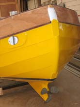 Sea Nymph is back upright. Angela wanted a yellow boat she will be easy to spot from miles away .shaft and prop are in flat areas on stern are for rudder gudgeons.