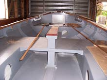 From the attached photos you will see that the inside is pretty much finished and painted, the deck is going on, Teak rubbing strips have been fitted (the black tape is to stop me getting Epoxy glue on them as I have yet to decide wether to paint or oil these). The top rubbing strip is going on in 2 pieces. A side piece and the top which is planed and sanded into it's final smooth shape. As soon as the Bow deck is in place I shall turn her over and finish off the bottom......... something that I think will happen in the next couple of weeks.