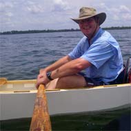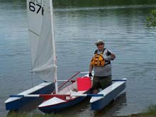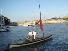 | Jim Renouf with his Bufflehead, "Eden" - his 1st moment afloat in her. |