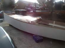 I have finished the inside and have rolled her over and started on the outside. Hopefully will prime Saturday. I am happy with my efforts thus far. Got my oars last week and am itching to get on the water but am attempting all the calls in my head to hurry. I ordered my oars from Van Fancy of Fancyoars-paddles.com Very nice man and he makes and has been making oars for a long time. Great prices too. Fast? well he is very fast. Makes oars as they are ordered appearently. I got one pair of spoons and one pair of straights for the price of a pair of S&T's.. I have put up new photos of my progress in the photo section. Whatcha think?