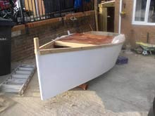 until the gunwale is about 3" from the water. I am now working on the rudder and